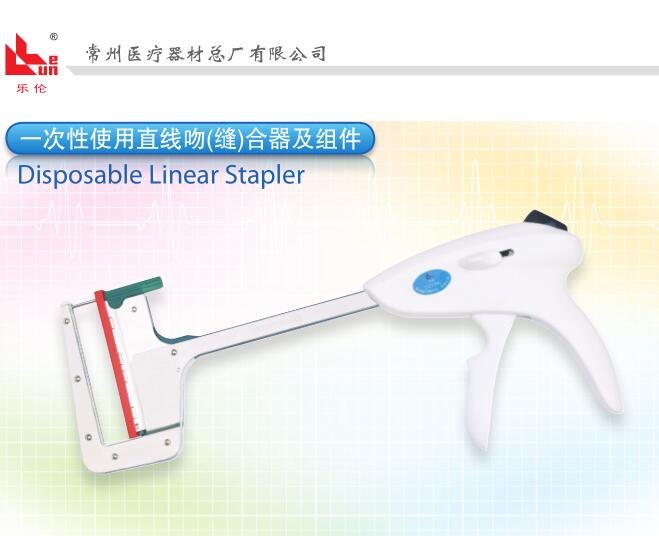 一次性使用直線吻(縫)合器是在組織上擊入成直線排列的兩排互相交錯(cuò)的縫釘,來(lái)代替手工進(jìn)行手術(shù)縫合。應(yīng)用該器械可以節(jié)省手術(shù)時(shí)間、減少病員出血、能更方便地進(jìn)行手術(shù)縫合。本器械有五種規(guī)格以適應(yīng)不同組織:30mm,45mm,60mm,75mm,90mm。另外可調(diào)的縫釘高度分別有:3.8和4.5mm,以彌補(bǔ)各種厚度的組織。
