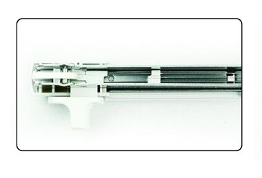 一次性直線切割手術(shù)吻合器是在組織上擊入成直線排列的四排互相交錯的縫釘,組件內(nèi)的切割刀同步將組織離斷。應(yīng)用該器械可以節(jié)省手術(shù)時間、減少病員出血、能更方便地進行手術(shù)縫合。本器械有六種規(guī)格以適應(yīng)不同組織:55mm,60mm,75mm,80mm,90mm,100mm。另外可調(diào)的縫釘高度分別有:2.5mm,3.85和4.5mm,以彌補各種厚度的組織。